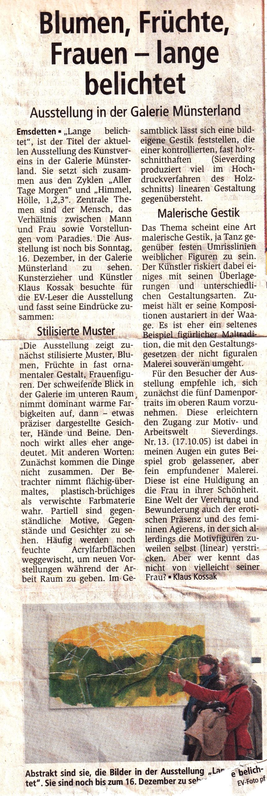 „Blumen, Früchte, Frauen – lange belichtet; Austellung in der Galerie Münsterland“, EV