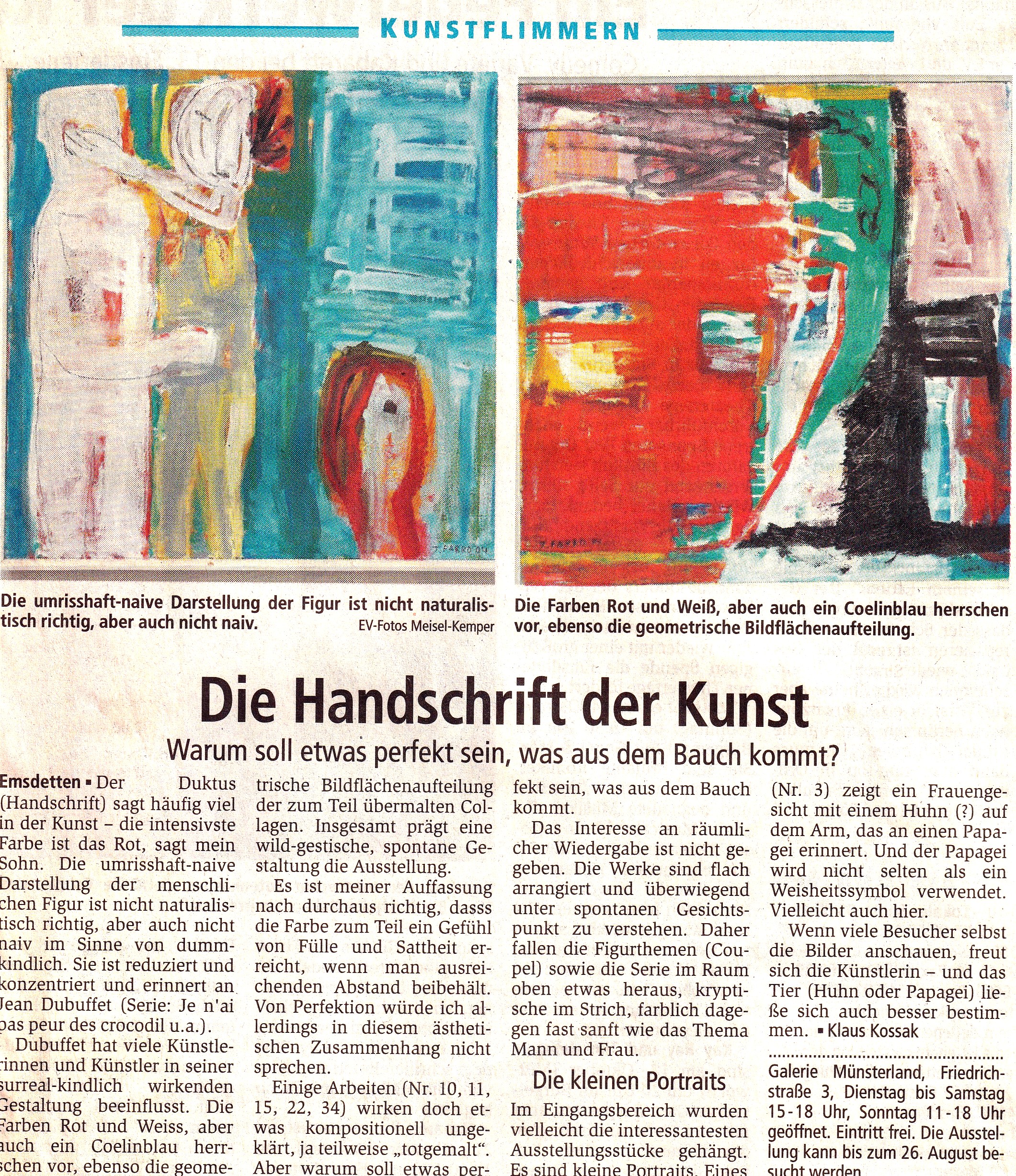 „Handschrift in der Kunst – Warum soll etwas perfekt sein, was aus dem Bauch kommt? „, EV
